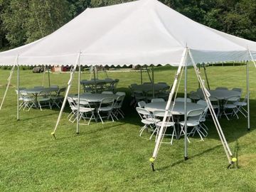 Our 20x30 High Pole Tent is the perfect solution for larger events seating up to 60 people, providing ample space and an elegant, open-air design.